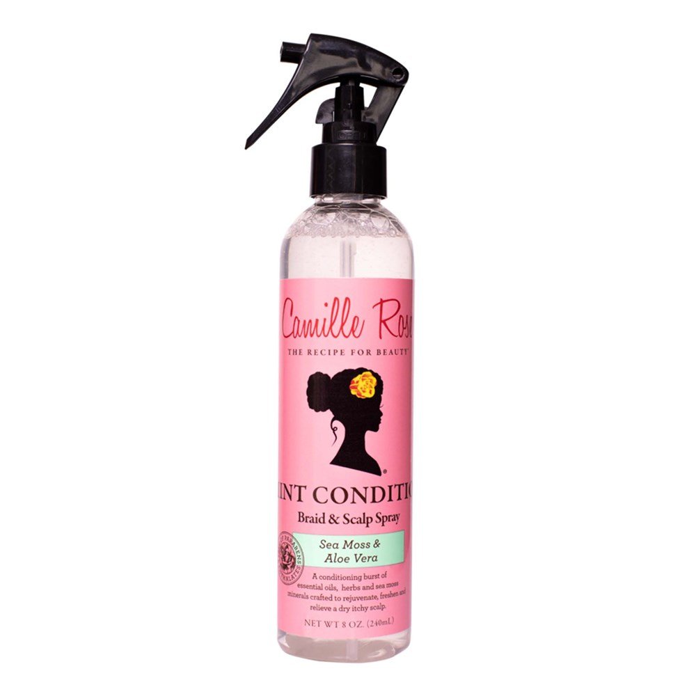DETAILS: Nourish your scalp and soften your roots with Mint Condition to stimulate healthy hair with our handcrafted herbal tea blend. Infused with aloe vera juice and sea moss, Mint Condition, strengthens the hair and reduces breakage. How to Use: Use this nourishing and protective style conditioner daily on braids, scalp, twists, locs, or directly on the hair.