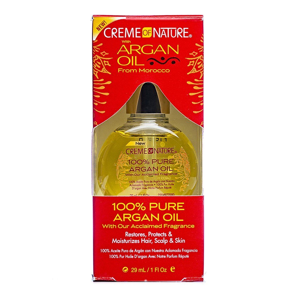 DETAILS: 100% Pure Argan Oil from Morocco with Creme of Nature?s acclaimed fragrance. Restores protects and moisturizes hair, scalp, and skin. Lightweight daily moisturizer. Absolutely zero synthetics, fillers, mineral oil, or parabens