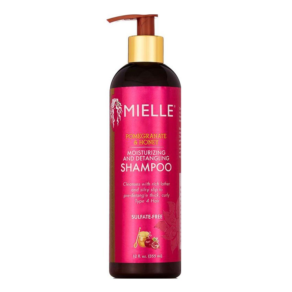 DETAILS: Mielle?s Pomegranate & Honey Moisturizing and Detangling Shampoo uses natural ingredients like honey and babassu oil to lift dirt and oil from your hair while preserving moisture. Provides silky slip. Pre-detangles thick, curly hair. Cleans without stripping natural moisture.
